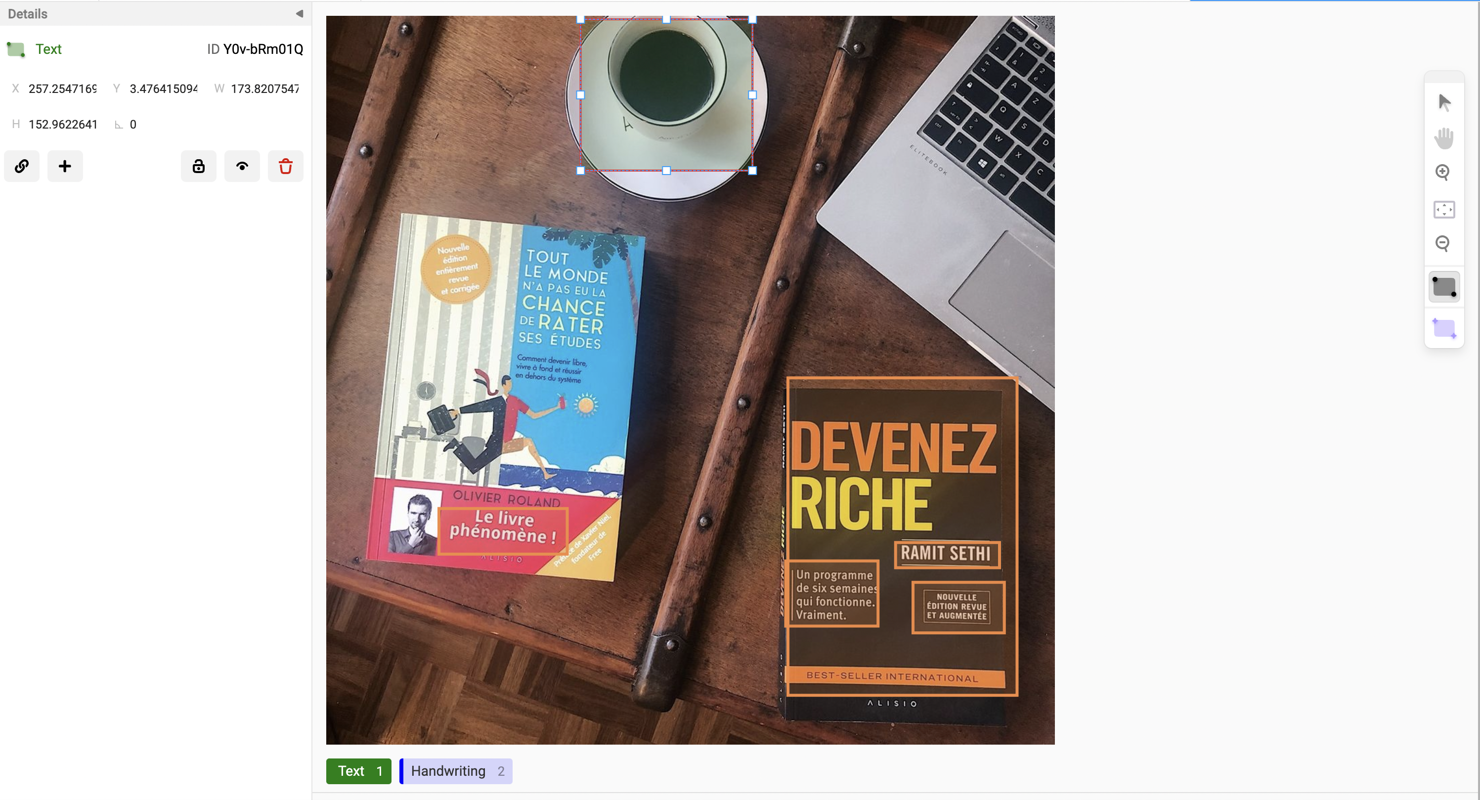 You can edit regions with a focus on labeling. You can zoom in and precise control over the numbers and dimensions of each region attribute. The image region details like height, rotation, and so on can be changed using the inputs in the Details panel. Now, you can collapse all panels and get the maximum working area. This feature design makes some actions clear in the product user interface.